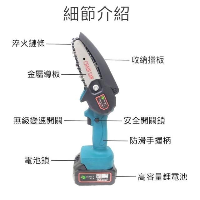 創藝6吋-無刷電鏈鋸-紅色 附一電一充(迷你電鏈鋸 線鏈鋸 鏈條鋸 伐木 電動鋸子 電鋸 鏈鋸)