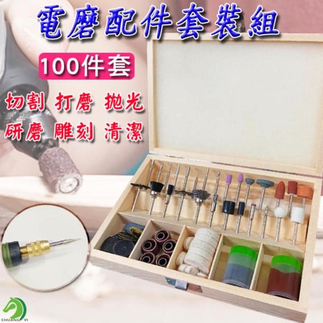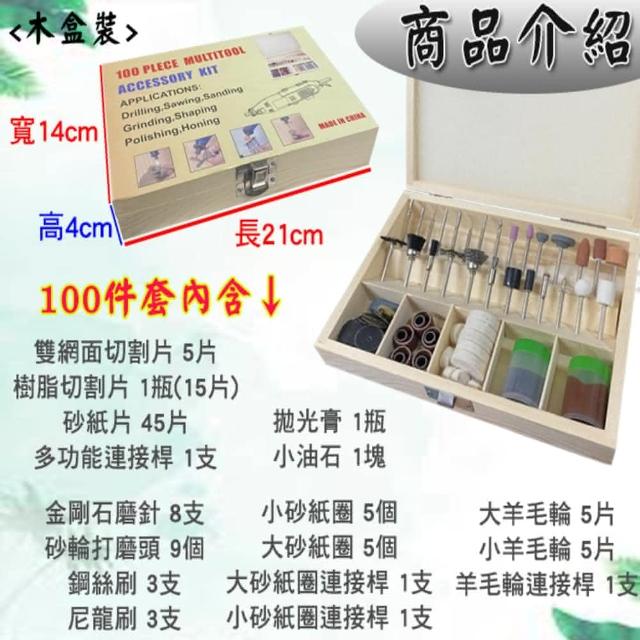 電磨配件100件套 附木製收納盒(電磨配件 電磨機配件 打磨頭 打磨)