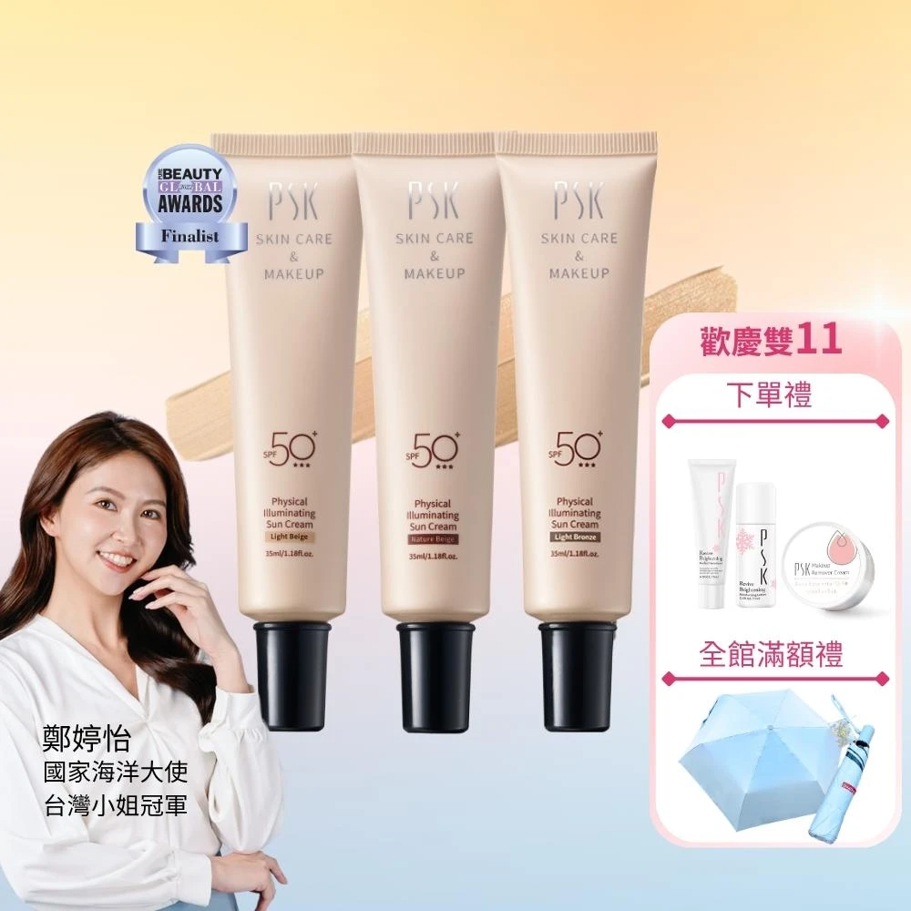 PSK 深海美肌專家隔離霜|純物理全能潤色隔離霜 SPF50+ ★★★ 35ml 3入組(物理性防曬 隔離霜 潤色 粉底 底妝 遮瑕)