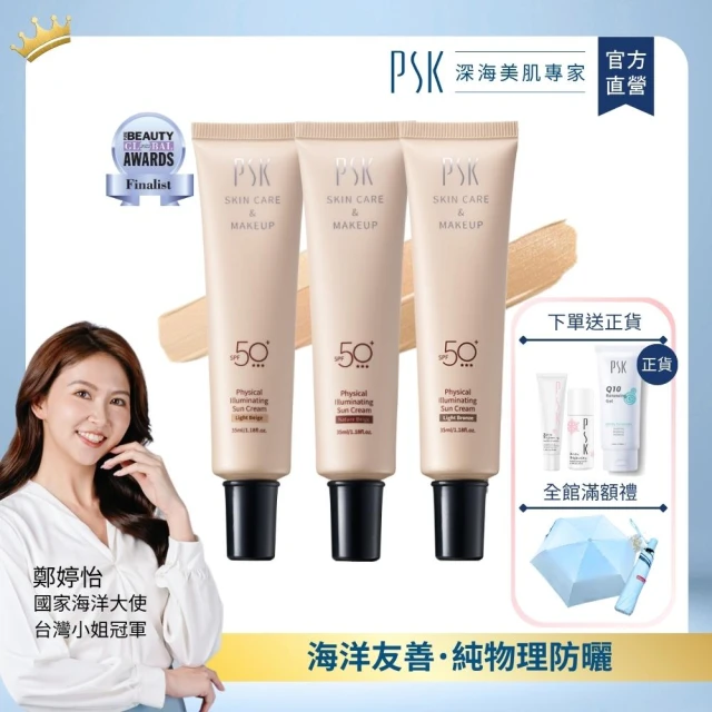 PSK 深海美肌專家隔離霜|純物理全能潤色隔離霜 SPF50+ ★★★ 35ml 3入組(物理性防曬 隔離霜 潤色 粉底 底妝 遮瑕)