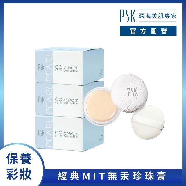 PSK 深海美肌專家珍珠膏3入組|珍珠CC膏10g*3 贈氣墊粉撲(珍珠膏 珍珠霜 CC霜 底妝 裸妝)