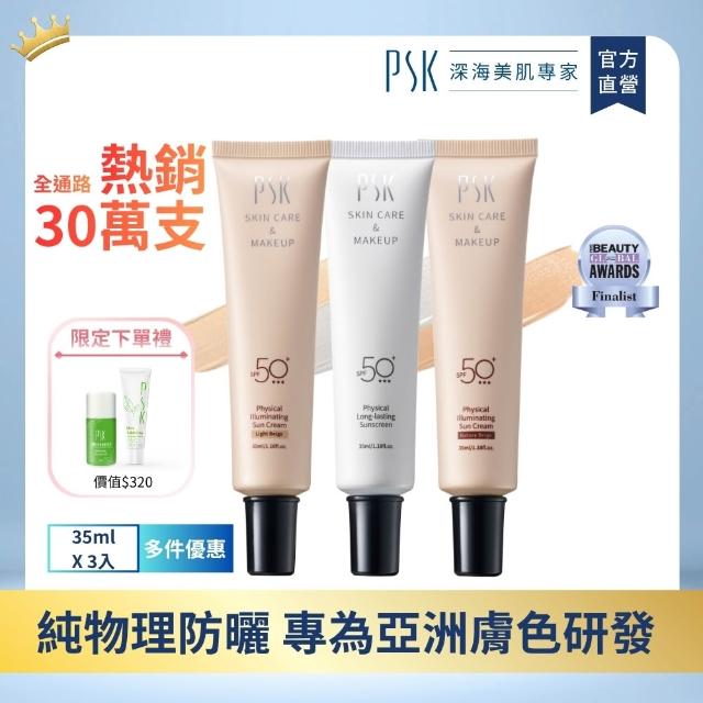 PSK 深海美肌專家防曬隔離霜3入|純物理全能潤色隔離霜 SPF50+ ★★★ 35ml*3(物理性防曬 隔離霜 潤色 粉底 底妝 遮瑕)