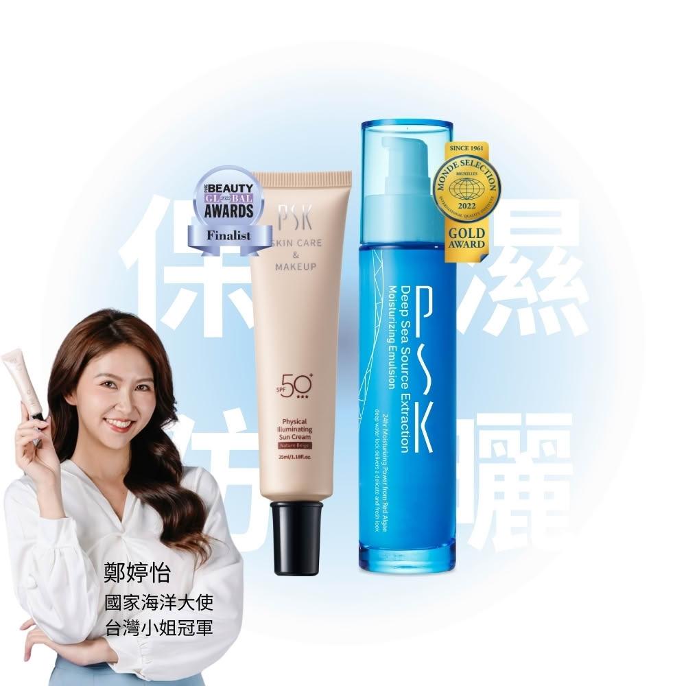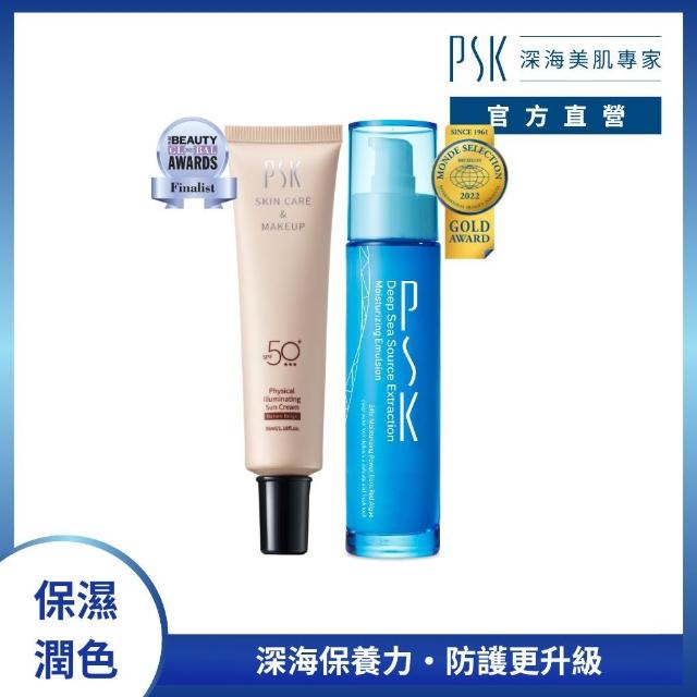 PSK 深海美肌專家彈潤美肌組│深海源萃保濕乳液+純物理全能潤色隔離霜 SPF50+★★★(物理性防曬 隔離霜 潤色 粉底 遮瑕)