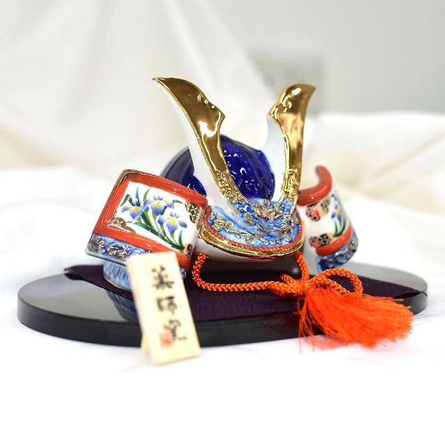 日本戰國武將兜 染錦陶製武士帽 大擺飾組 日本藥師窯 10.5cm kw213