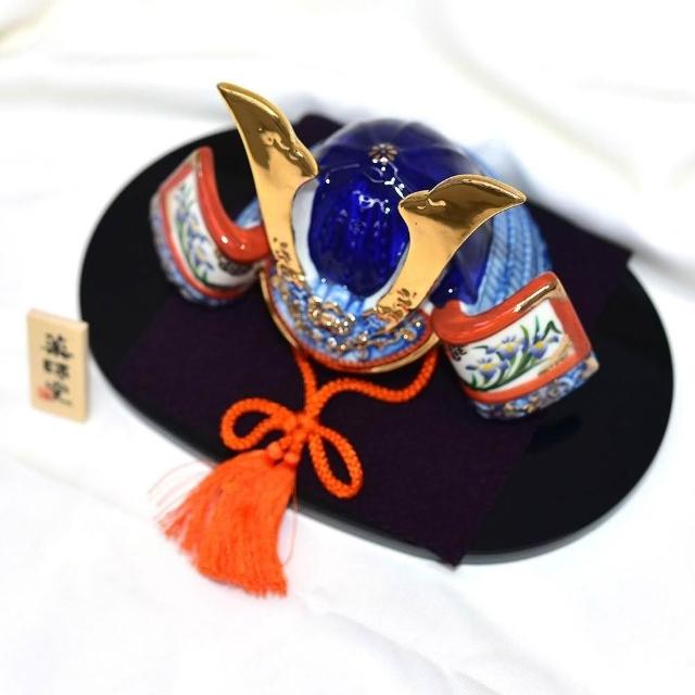 日本戰國武將兜 染錦陶製武士帽 大擺飾組 日本藥師窯 10.5cm kw213