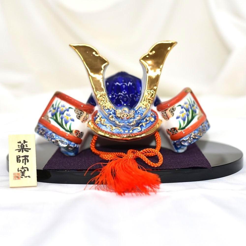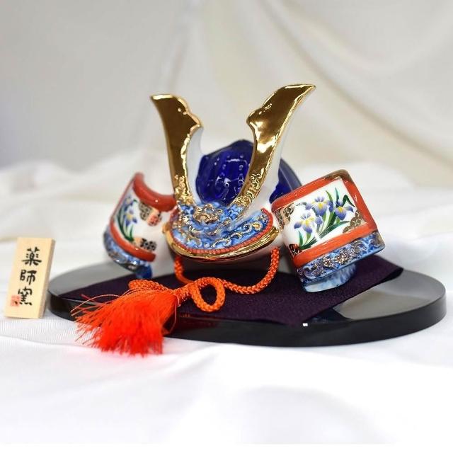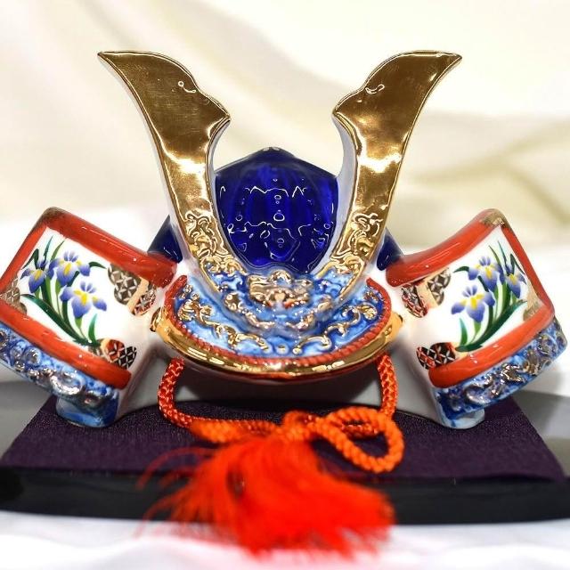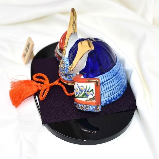 日本戰國武將兜 染錦陶製武士帽 大擺飾組 日本藥師窯 10.5cm kw213