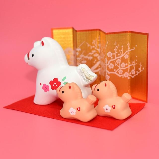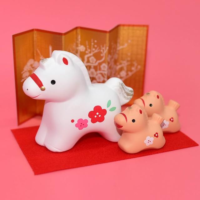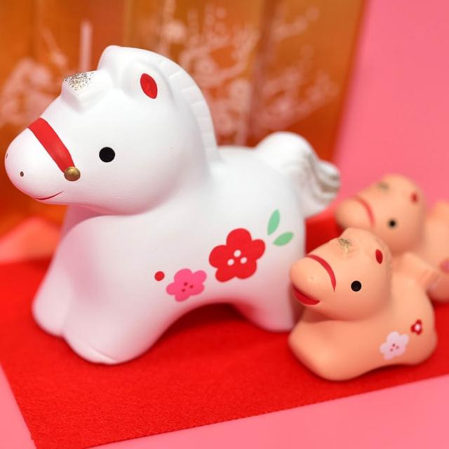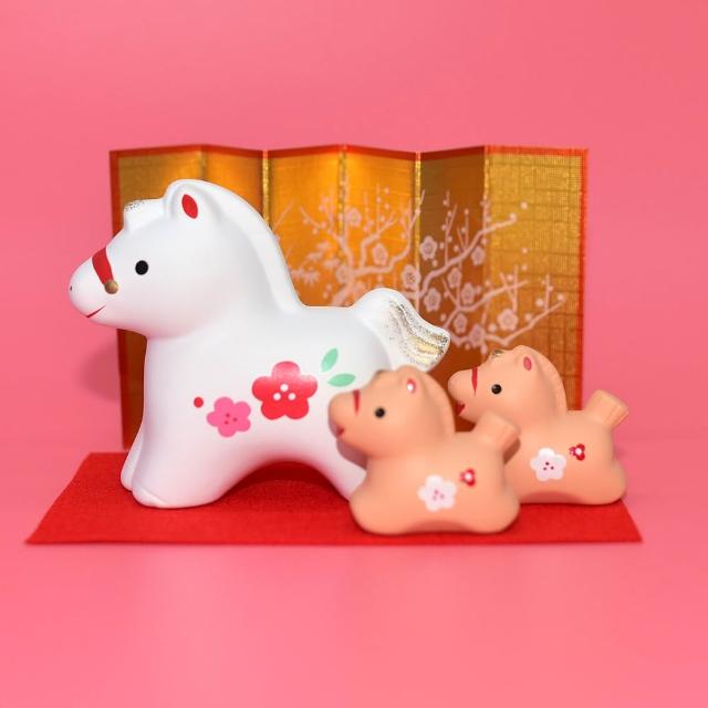 馬年限定 錦彩招福 紅梅 親子 干支馬年擺飾 藥師窯 日本正版 kh732