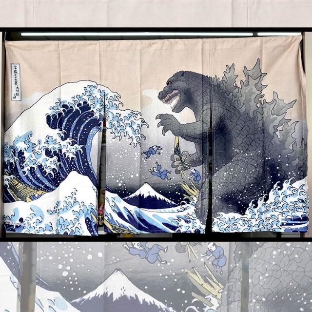 日本製 怪獸哥吉拉 特大 和風門簾 100%綿質 浮世繪 Godzilla 135x80cm bz579