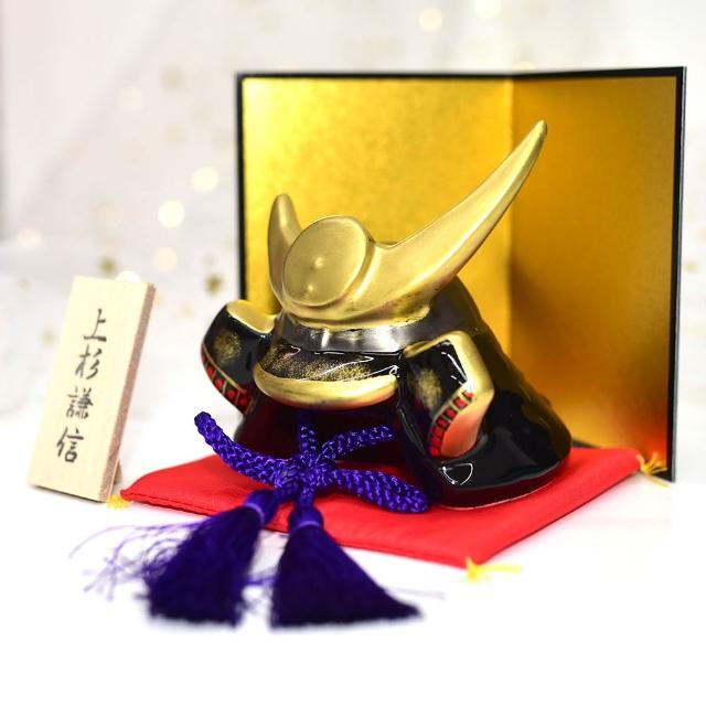 上杉謙信 日本戰國武將兜 陶製武士帽 擺飾組 日本製昭峰作 mn422