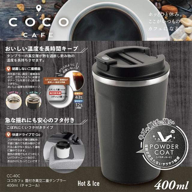 咖啡杯 保溫杯 含蓋真空雙層 不鏽鋼隨行杯 400ml 粉體烤漆款 cococafe ココカフェ kk45