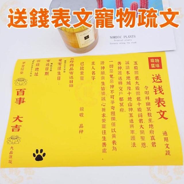 寵物通用疏文 脫離苦海文 送錢表文 祭祀 寵物祭祀用品 寵物祭祀 寵物祭拜 寵物專用 寵物疏文(賜福金香佛具)