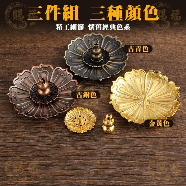 三層蓮花盤香座供佛 薰爐 茶道 香道 臥香夾 純銅香插 純銅葫蘆 香夾 多功能香插 相具 葫蘆香盤(賜福金香佛具)