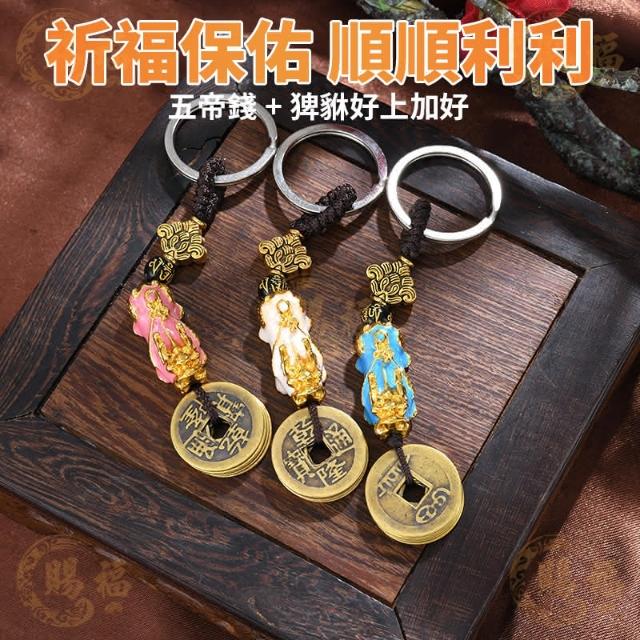 開運 吊飾 貔貅五帝錢 貔貅鑰匙圈 鑰匙圈 景泰藍 貔貅吊飾 五帝錢吊飾 貔貅 五帝錢 銅吊飾(賜福金香佛具)