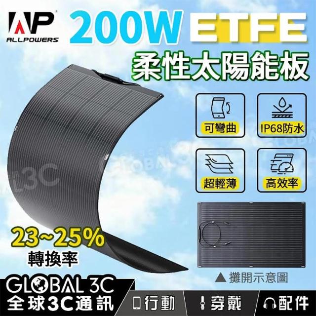 ALLPOWERS 200W 柔性太陽能板(SF200 ETFE 防水 可彎曲 單晶矽 25%轉換率 MC4接口)