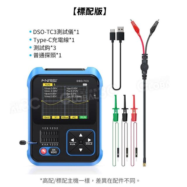 標配版FNIRSI DSO-TC3 數位示波器+晶體管測試儀+信號發生器(2.4吋螢幕 電容 一鍵自動調節)