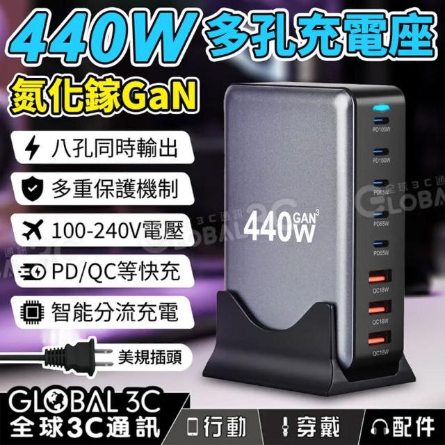440W氮化鎵GaN多孔充電器 八孔快充 PD3.0/QC3.0 多重保護 同時充電 智能分流 筆電手機