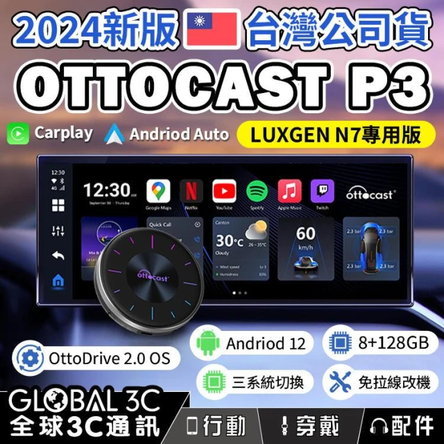 Ottocast P3 LUXGEN N7 長程全配版(2024年新款 安卓12 Carplay 8+128GB 車用安卓機 安卓盒)