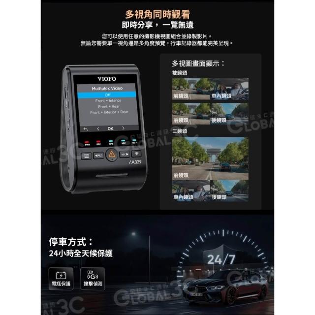 台灣代理VIOFO A329S 3CH 三鏡頭 行車記錄器 4K+2K 車內鏡頭 210°廣角