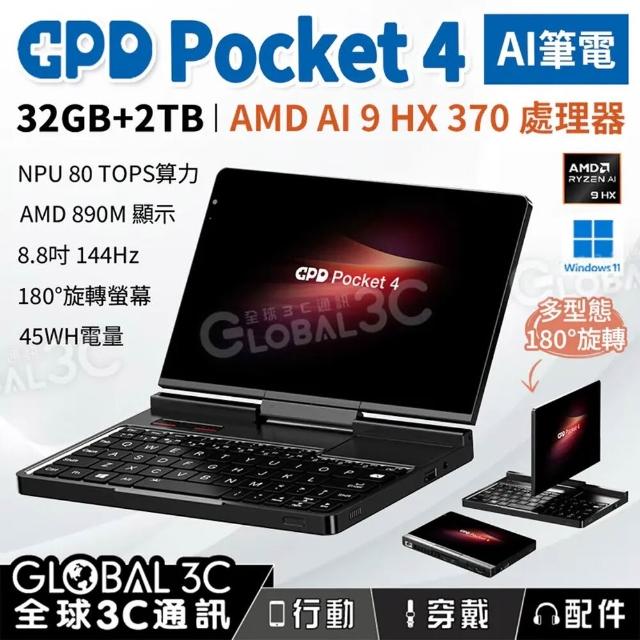GPD Pocket 4 32+2TB AI筆電 AMD Ryzen AI 9 HX370 旋轉螢幕