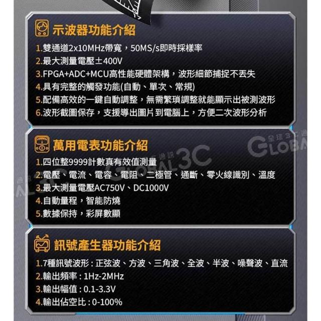 FNIRSI 2C23T 高配版 多功能示波器+萬用電表+訊號產生器 三合一 雙通道 智能防燒 自動