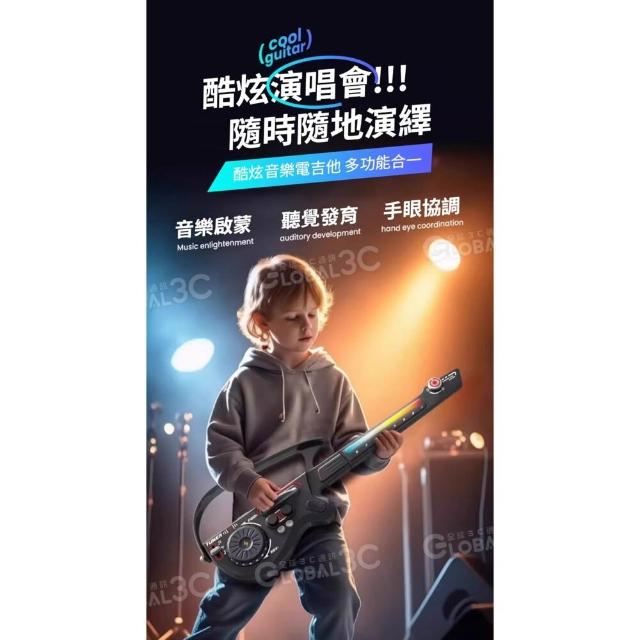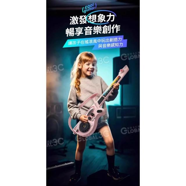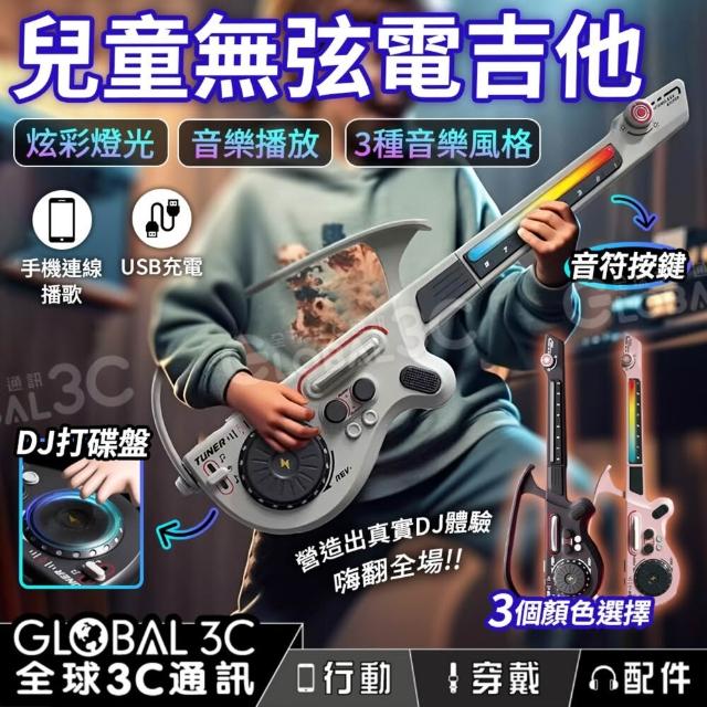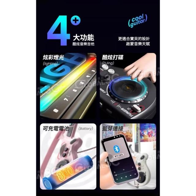 升級版 兒童無弦電吉他+刷碟盤 炫彩燈光 音符按鍵 手機連接播放音樂 3種音樂風格