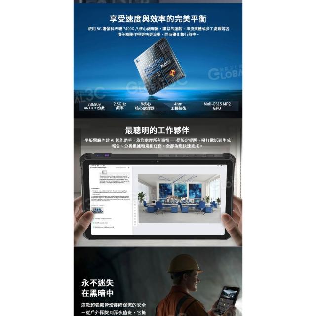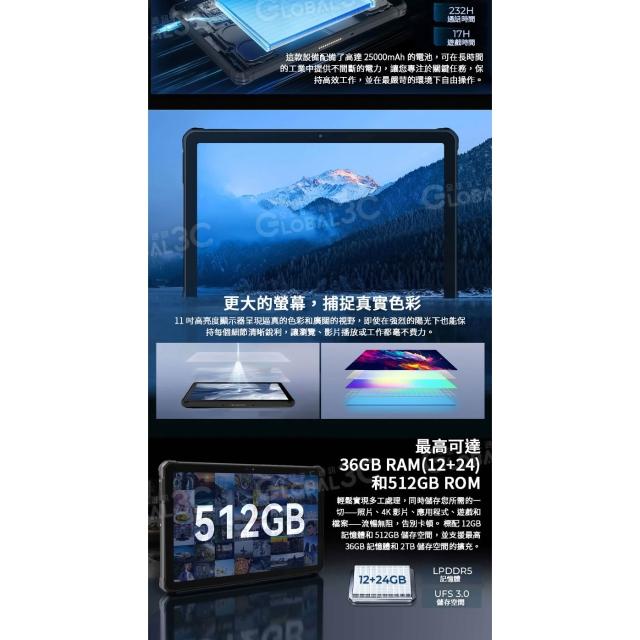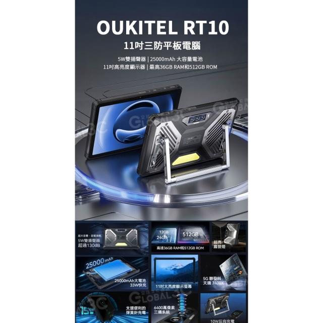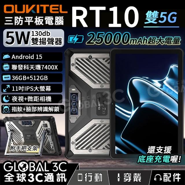 OUKITEL RT10 5G 三防平板電腦 36+512G 5W雙揚聲器 11吋 夜視相機 指紋+人臉解鎖 安卓15