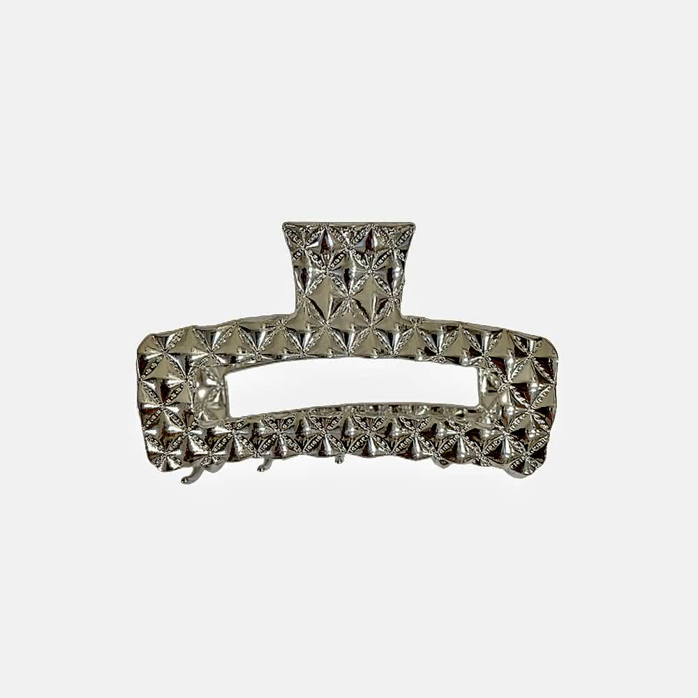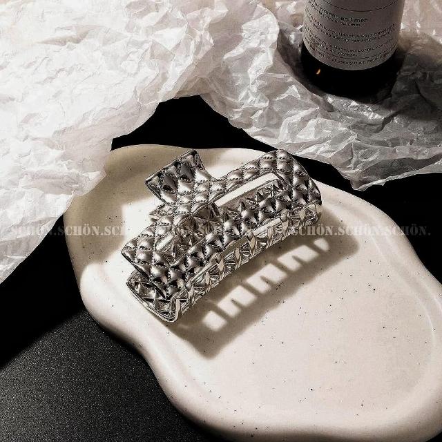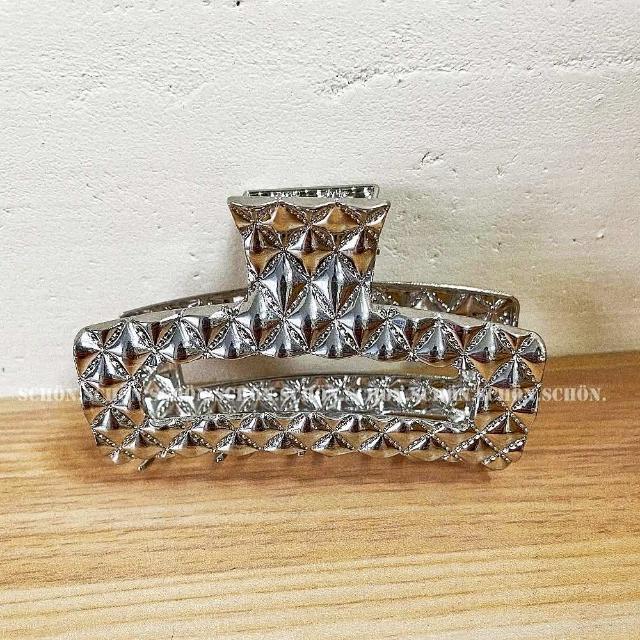 SCHON日本怪手夾-格紋金屬-中方(金屬抓夾 亮面金屬 銀色格紋 中型抓夾 簡約穿搭 ins 韓國)