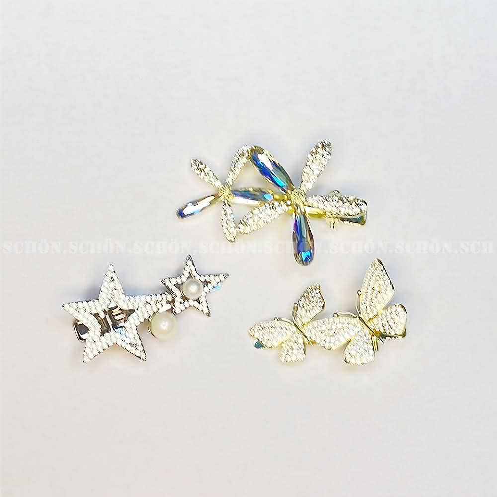 SCHON金屬水鑽壓夾(可愛少女水晶瀏海髮夾 側邊髮飾 甜美小清新花朵鴨嘴夾)