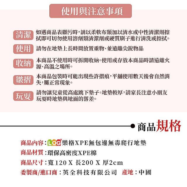 LOG 樂格XPE 環保無毒爬行地墊 素色款 120x120x2cm - 共5款(兒童地墊 嬰兒爬行墊 無接縫)