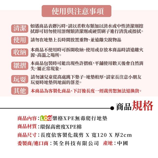 LOG 樂格XPE 客製化 自由裁切遊戲爬行地墊 米白 / 寬幅120cm x 任意長度 / 每單位為10cm / 共5款(爬行墊/摺疊墊/遊戲墊/客製化地墊)