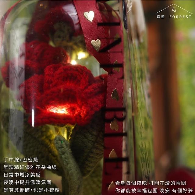 Forrest 森憩針織玫瑰花夜燈 情人節禮物(女朋友禮盒女友禮物老婆禮物生日禮物永生花玻璃罩小夜燈花燈)