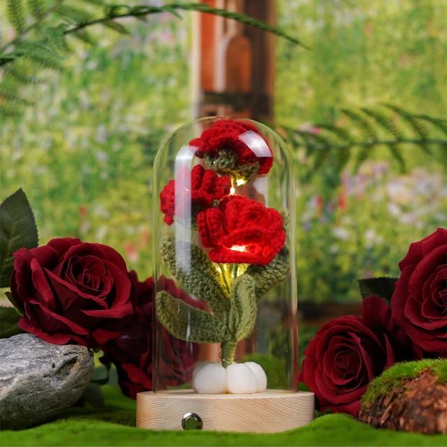 Forrest 森憩針織玫瑰花夜燈 情人節禮物(女朋友禮盒女友禮物老婆禮物生日禮物永生花玻璃罩小夜燈花燈)
