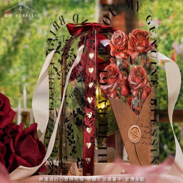 Forrest 森憩針織玫瑰花夜燈-情人節禮盒(女朋友禮盒女友禮物老婆禮物生日禮物永生花玻璃罩小夜燈 花燈)