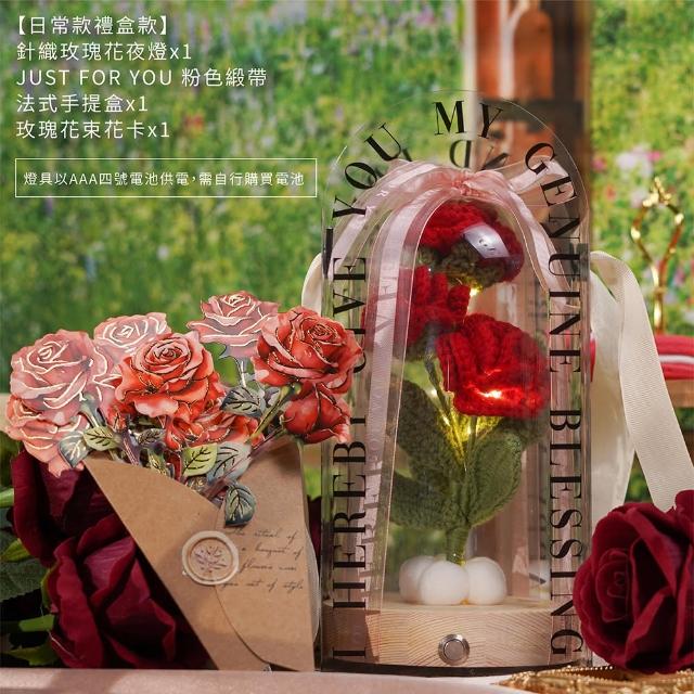 Forrest 森憩針織玫瑰花夜燈-情人節禮盒(女朋友禮盒女友禮物老婆禮物生日禮物永生花玻璃罩小夜燈 花燈)