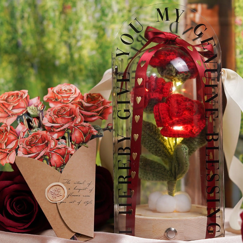 Forrest 森憩針織玫瑰花夜燈-情人節禮盒(女朋友禮盒女友禮物老婆禮物生日禮物永生花玻璃罩小夜燈 花燈)