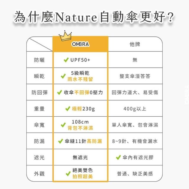 OMBRANature / 買1送1 超極輕 防回彈自動傘(外銷日本 晴雨兩用 安全開收 雨傘 防曬 速乾超潑水 折疊傘 折傘 )