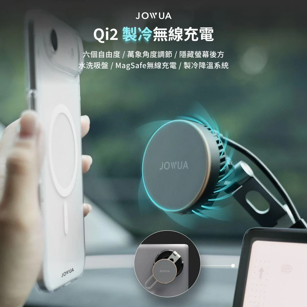 JOWUAJOWUA 特斯拉 Model 3 Y S X製冷六維隱藏車架Qi2 (MagSafe) 車架 手機支架 製冷降溫