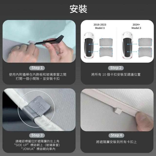JOWUA特斯拉 Model Y 全車系 所有年份 原車灰玻璃車頂遮陽簾 (特殊雙面布料 專利卡扣)