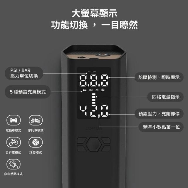 JOWUA100W雙快充打氣機(輪胎打氣機/無線打氣機/胎壓檢測/汽車打氣機/電動車打氣機)