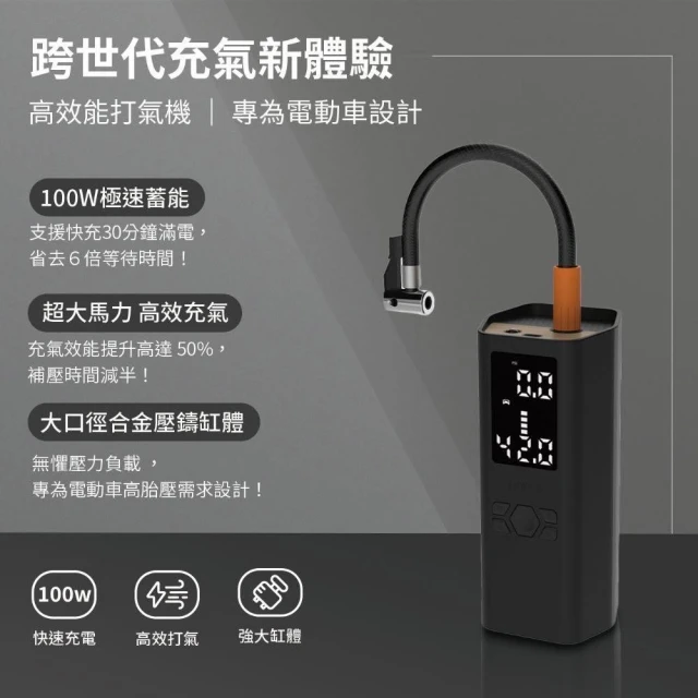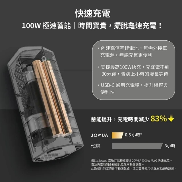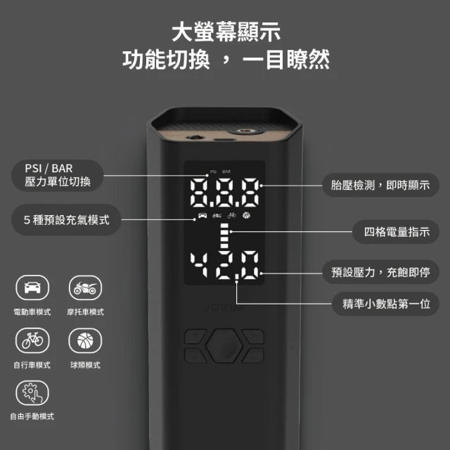 JOWUA100W雙快充打氣機(輪胎打氣機/無線打氣機/胎壓檢測/汽車打氣機/電動車打氣機)