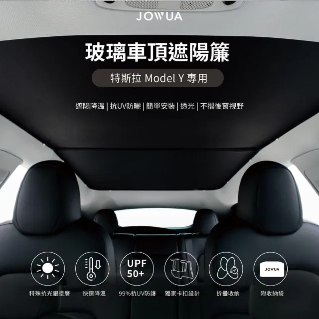 JOWUAJOWUA 特斯拉Model Y 全車系 所有年分 黑武士玻璃車頂遮陽簾 (特殊雙面布料 專利卡扣)