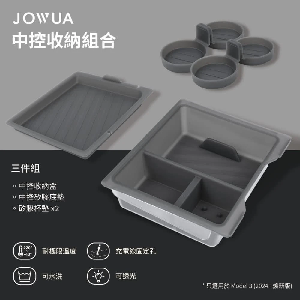 JOWUA特斯拉Model 3/Y 煥新版 中控收納組(中控收納合 前後座杯架)