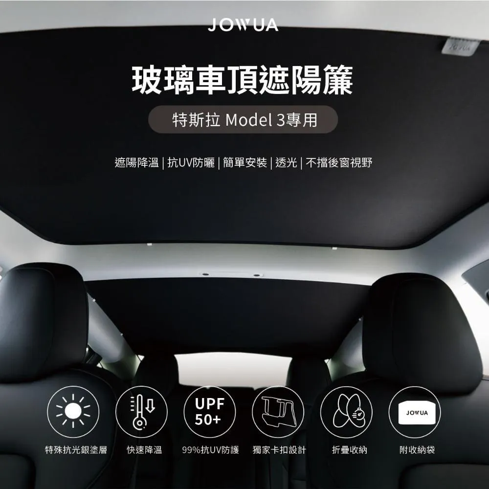 JOWUA特斯拉 TESLA Model 3全車系 玻璃車頂遮陽簾黑武士(特殊雙面布料 專利卡扣)