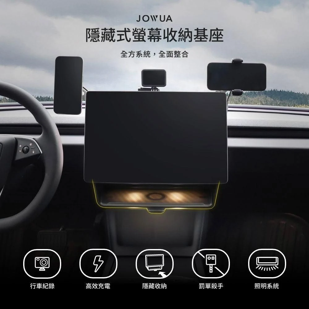 JOWUAJOWUA 特斯拉Model 3/Y(煥新版) & 3/Y(2018-2024)隱藏式螢幕收納基座組 螢幕下 置物 充電