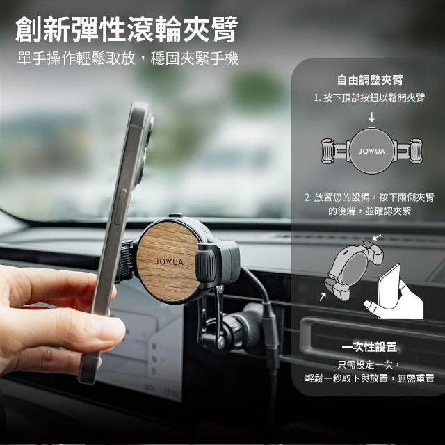 JOWUAQi2無線充電出風口車架(夾式滾輪款手機架) iPhone Android 圓型出風口 葉片出風口