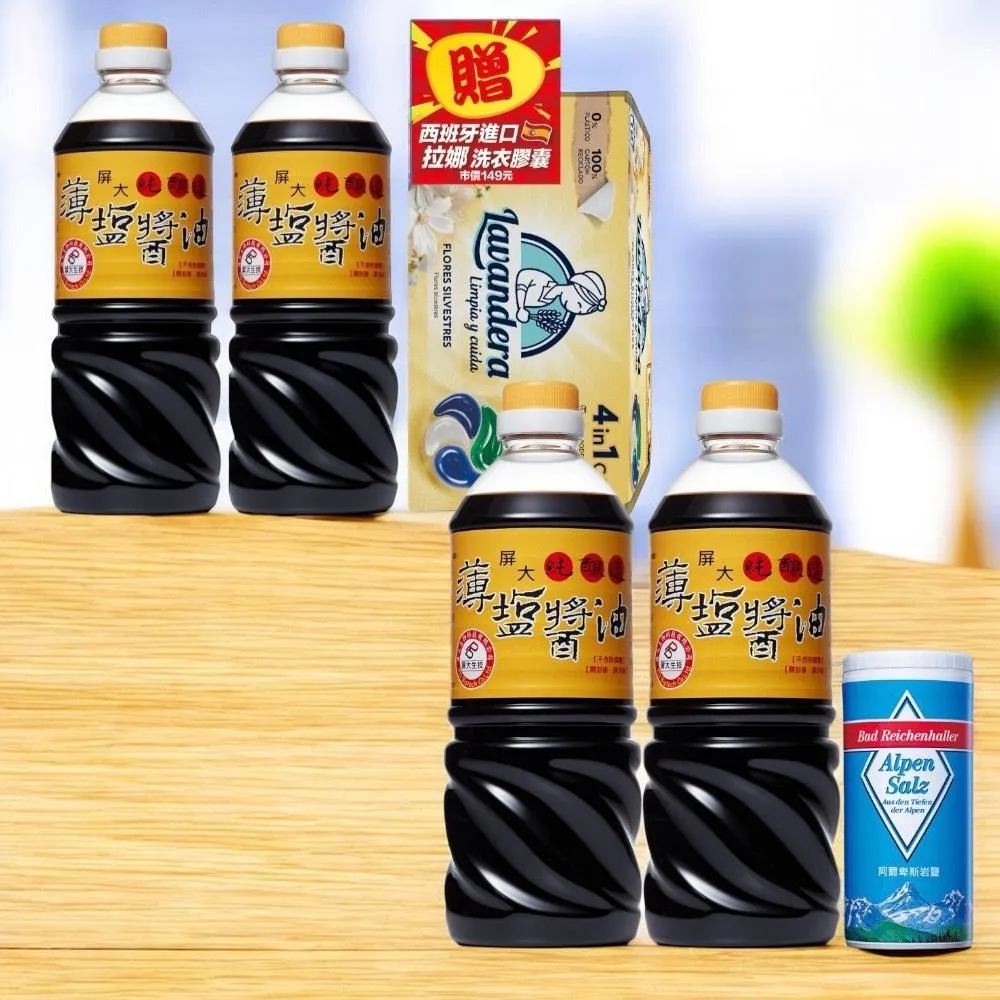 屏大(超取限2組)非基改薄鹽醬油710ml*2+好禮2選一(可選贈品:洗衣球或山鹽)