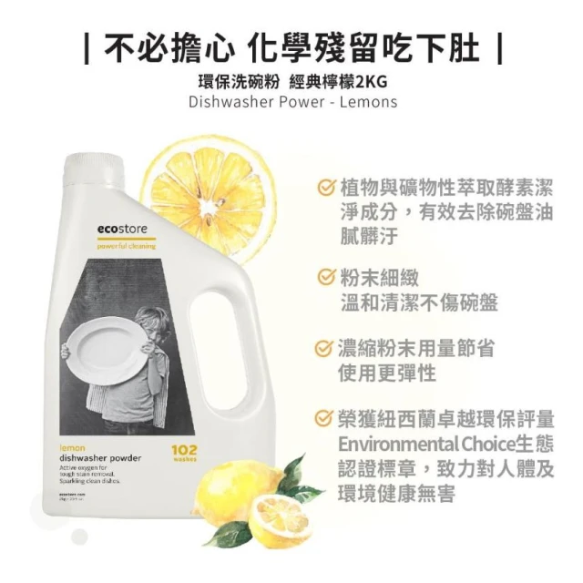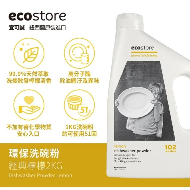 ecostore 宜可誠紐西蘭ecostore 2kg環保洗碗粉-經典檸檬 洗碗機專用 (採用植物與礦物性潔淨成分/去除異味) 台灣公司貨