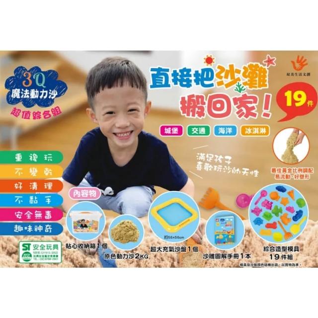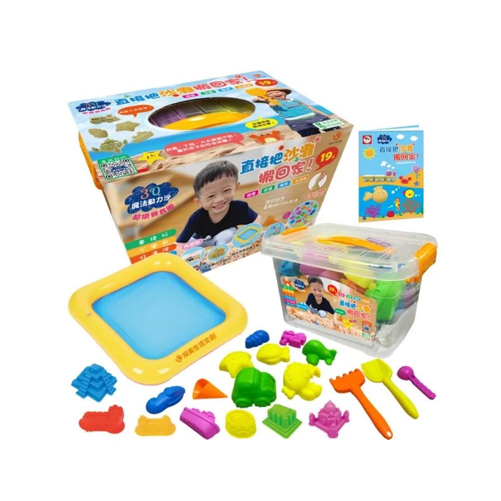 雙美生活文創雙美 3Q魔法動力沙超值19件組(含2kg原色動力沙+19件綜合造型模具組+超大充氣沙盤*1+收納箱*1+沙雕圖解手冊*1)