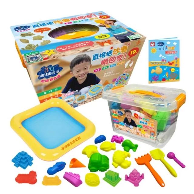 雙美生活文創雙美 3Q魔法動力沙超值19件組(含2kg原色動力沙+19件綜合造型模具組+超大充氣沙盤*1+收納箱*1+沙雕圖解手冊*1)