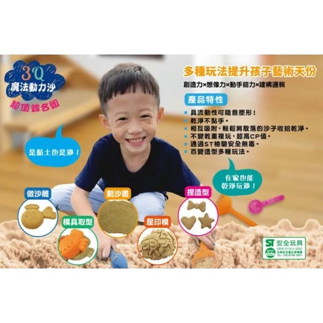 雙美生活文創雙美 3Q魔法動力沙超值19件組(含2kg原色動力沙+19件綜合造型模具組+超大充氣沙盤*1+收納箱*1+沙雕圖解手冊*1)
